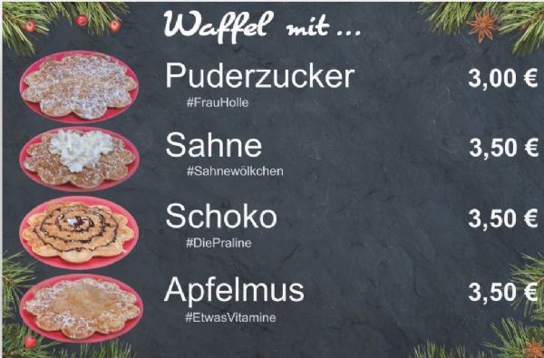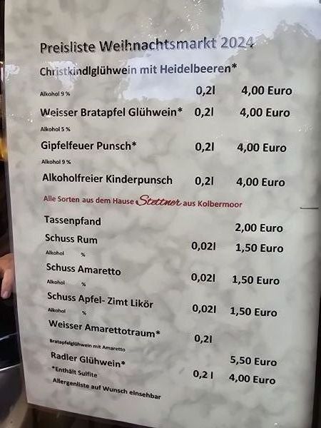 Various mulled wines, children's punch, assorted schnapps, mulled wine also available in bottles to take away.